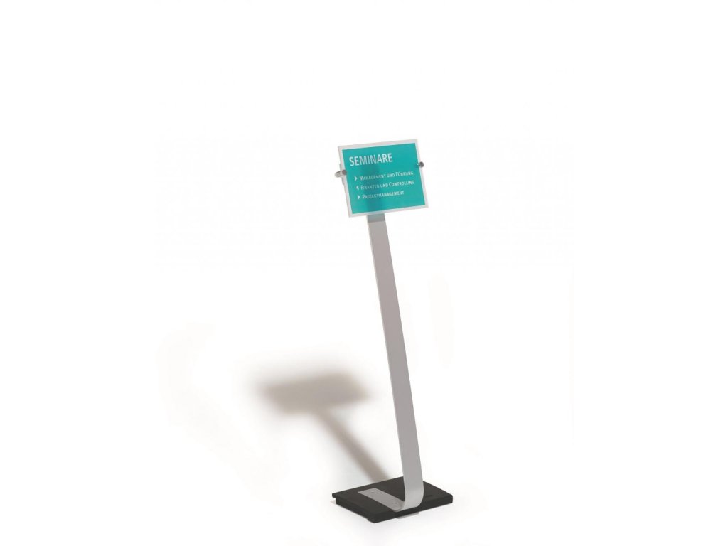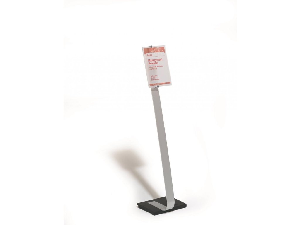 Vysoko kvalitný elegantný hliníkový stojan s informačným panelom Crystal Sign formátu A4,dodávaným s 2 polopriehľadnými výplňami na popis. Použiteľný na výšku alebo na šírku. Zaťaženie stojana a gumové podložky zabezpečujú stabilitu. Protiodrazový panel je možné otočiť vertikálne alebo horizontálne a naklápať v rozmedzí 10 stupňov.Šablóny na potlač sú voľné stiahnuteľné na www.durable.de.Dodatočné parametre