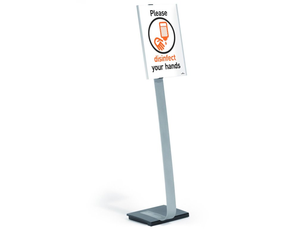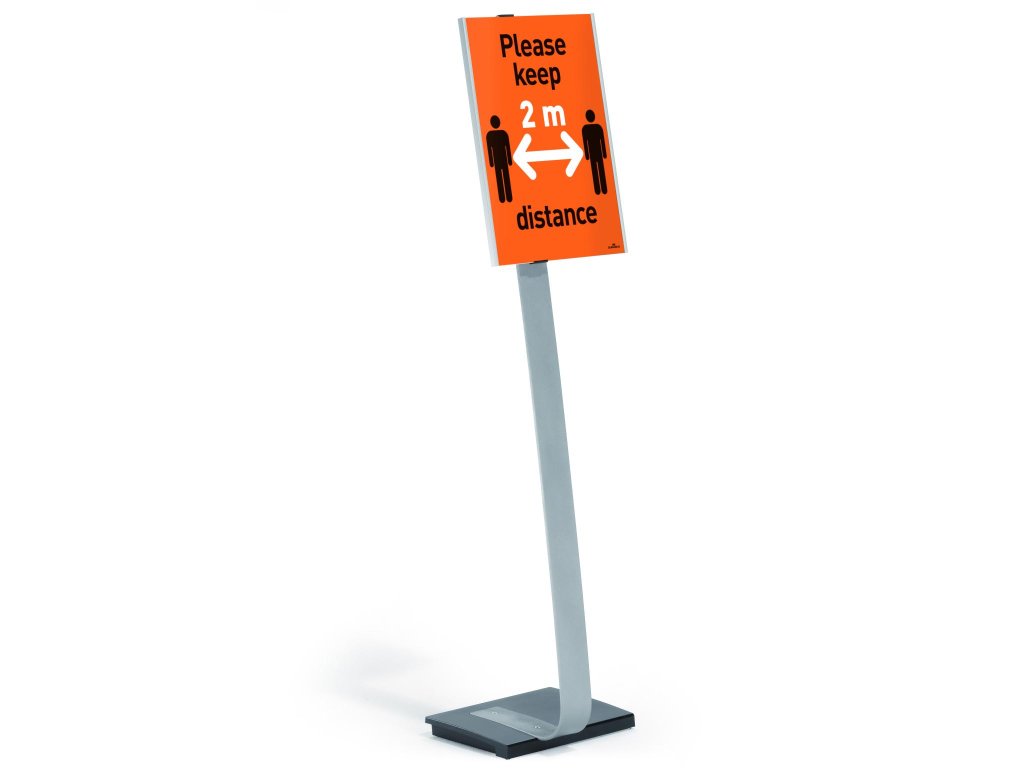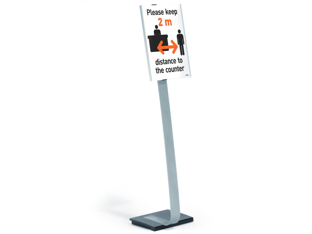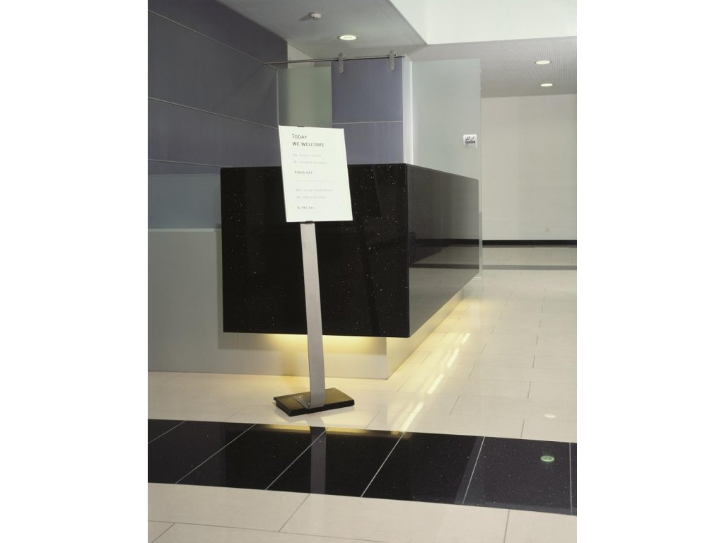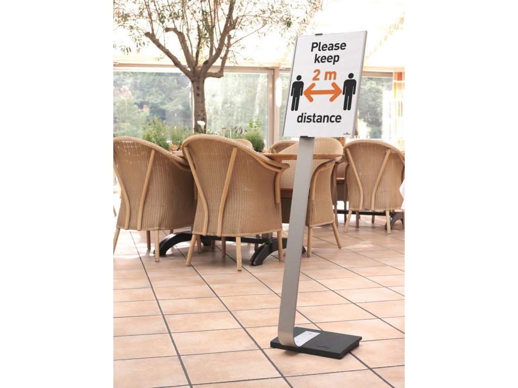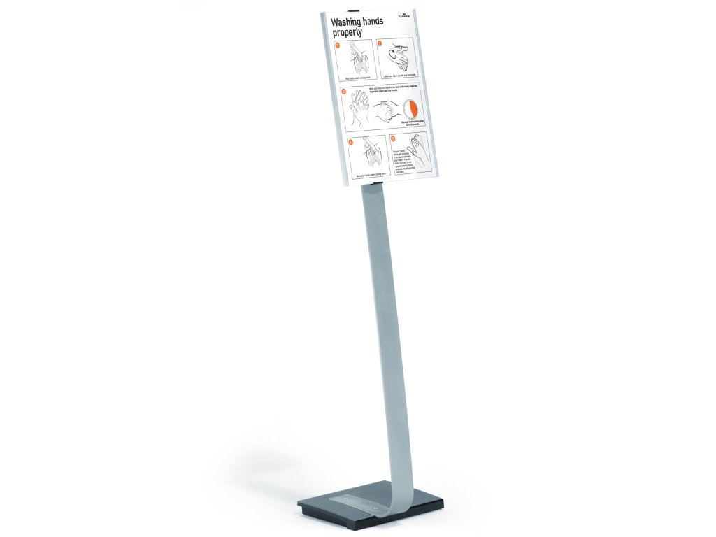 Vysoko kvalitný elegantný hliníkový stojan s informačným panelom formátu A3, použiteľným na výšku alebo na šírku. Zaťaženie stojana a gumové podložky zabezpečujú stabilitu. Protiodrazový panel je možné otočiť vertikálne alebo horizontálne a naklápať v rozmedzí 10 stupňov.Šablóny na potlač sú voľné stiahnuteľné na www.durable.de.Maximálna výška: 1,25 m/1,2 m