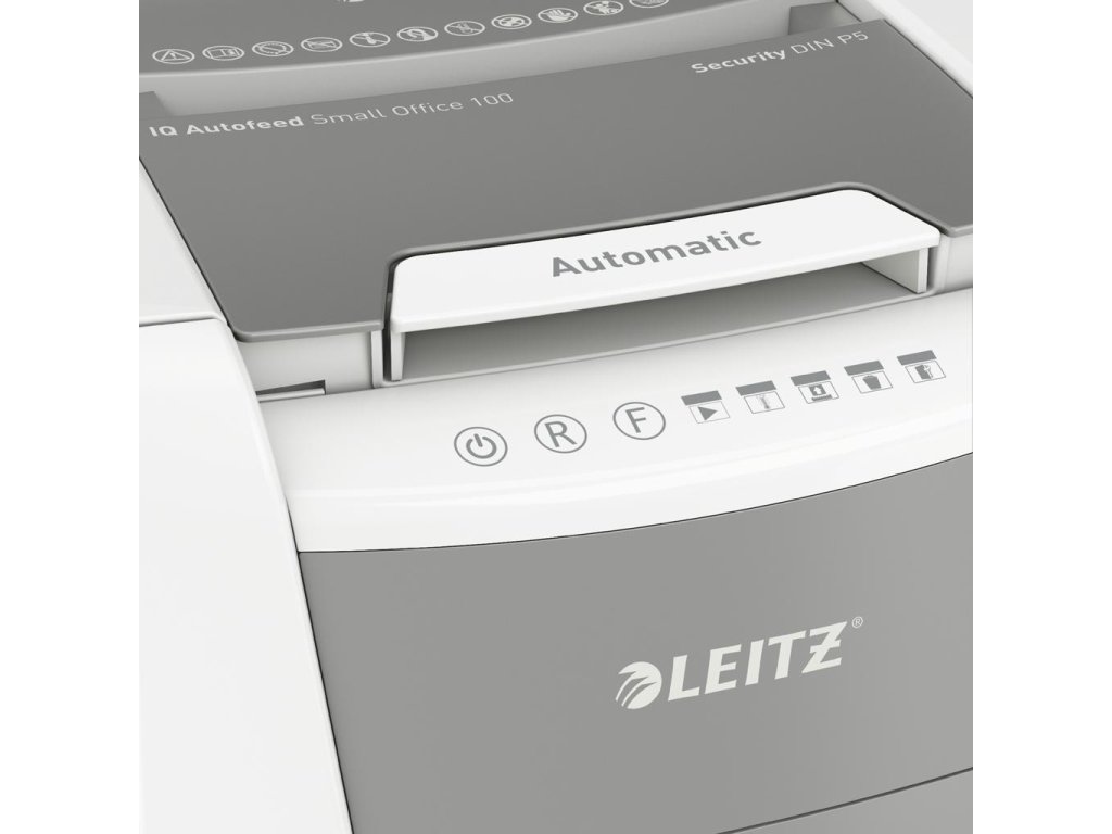 Plnoautomatická skartovačka na papier od firmy Leitz s jedinečnou čistou vyprázdňovacou funkciou. Je taká inteligentná, že potichu pracuje sama, len vložíte stoh papiera (vrátane kancelárskych sponiek a sponiek do zošívačky), zatvoríte veko a môžete ísť za svojou robotou. Ideálna na používanie v malej kancelárii. Mimoriadne dôveryhodná a vysokovýkonná skartovačka s automatickým podávaním, s funkciou proti zaseknutiu papiera, tichá a s dlhou dobou prevádzky (20 minút). Automaticky skartuje 100 hárkov A4 na úrovni zabezpečenia P-5 (2 × 15 mm) s mikrorezom do veľkého 34l koša. Jednoduché ovládanie pomocou dotykových prvkov.