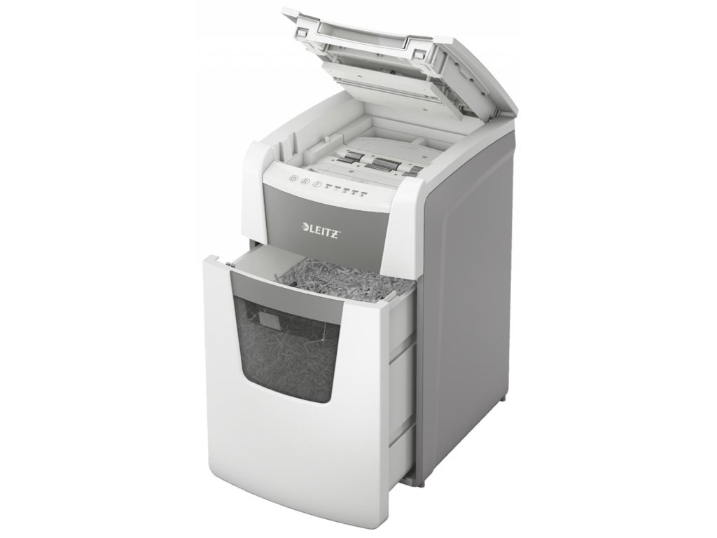 Plnoautomatická skartovačka na papier od firmy Leitz s jedinečnou čistou vyprázdňovacou funkciou. Je taká inteligentná, že potichu pracuje sama, len vložíte stoh papiera (vrátane kancelárskych sponiek a sponiek do zošívačky), zatvoríte veko a môžete ísť za svojou robotou. Ideálna na používanie v kanceláriách. Mimoriadne dôveryhodná a vysokovýkonná skartovačka s automatickým podávaním, s funkciou proti zaseknutiu papiera, tichá a s dlhou dobou prevádzky (30 minút). Automaticky skartuje 150 hárkov A4 na úrovni zabezpečenia P-5 (2 × 15 mm) s mikrorezom do veľkého 44l koša. Jednoduché ovládanie pomocou dotykových prvkov.