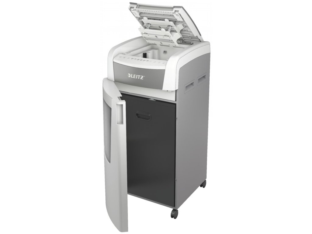 Plnoautomatická skartovačka na papier od firmy Leitz s jedinečnou čistou vyprázdňovacou funkciou. Je taká inteligentná, že potichu pracuje sama, len vložíte stoh papiera (vrátane kancelárskych sponiek a sponiek do zošívačky), zatvoríte veko a môžete ísť za svojou robotou. Ideálna na každodenné používanie v kancelárii. Dôveryhodná a vysokovýkonná skartovačka s funkciou proti zaseknutiu papiera, tichá a s prvotriedne dlhou dobou prevádzky (240 minút). Automaticky skartuje 600 hárkov A4 na úrovni zabezpečenia P-4 (4 × 28 mm) s krížovým rezom do veľkého 110l koša. Jednoduché ovládanie pomocou dotykových prvkov.