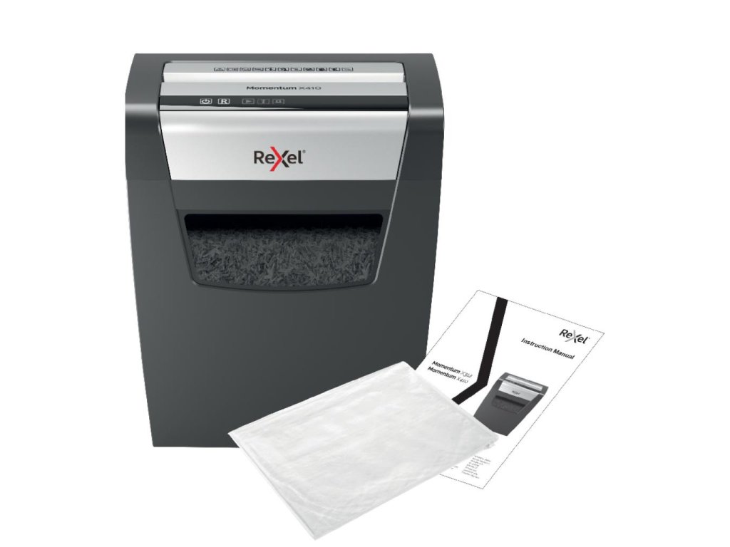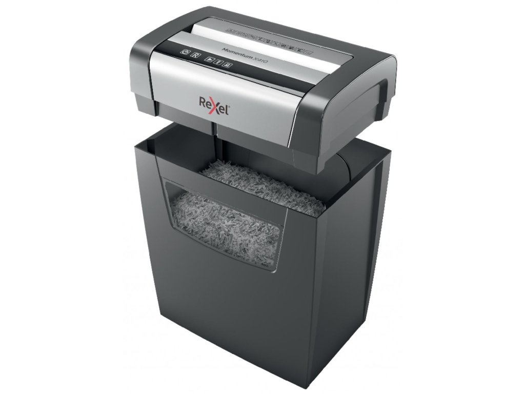 Nezastaviteľná skartovačka! Rexel Momentum X410 skartuje až 10 hárkov naraz a vydrží v nepretržitom chode 6 minút, vhodná na použitie doma. Technológia proti zaseknutiu papiera garantuje neprerušované skartovanie. Krížový rez na úrovni zabezpečenia P4 reže papier na časti s veľkosťou 4 × 28 mm. Dotykové ovládanie pre jednoduché a intuitívne ovládanie. Objemný kôš s kapacitou 23 l pojme 225 hárkov A4.