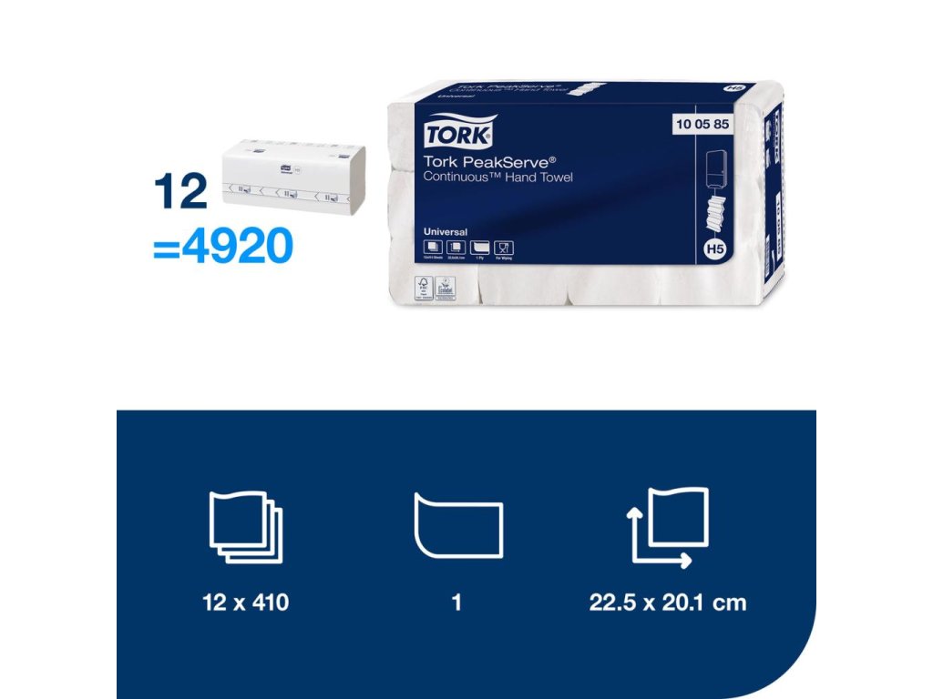 Systém nepretržitého dávkovania utierok dávkuje utierky plynule, dokonca aj medzi jednotlivými baleniami, kvoli lepšej plynulosti prevádzky v toaletách a umyvárňach, bez prestojov pre hostí. Stlačené balenia utierok na ruky zvýši kapacitu a znížený čas potrebný na údržbu. Ekonomické balenie a dávkovanie po útržkoch znižujú spotrebu.Kartóny Carry pack s prvkami Tork Easy Handling, s utierkami na ruky stlačenými o 50 % pre efektívnu manipuláciu, prepravu a uskladnenie.