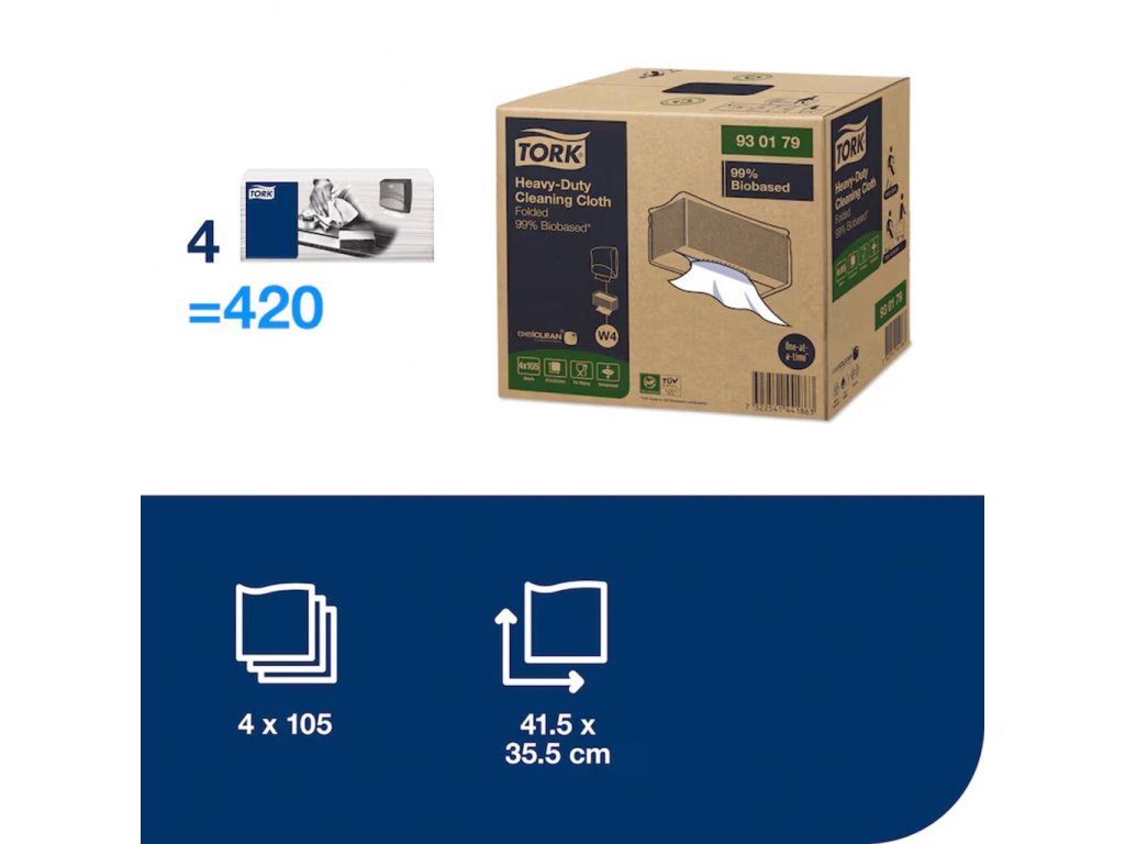 Utierky skladané TORK Heavy-Duty Biobased W4 1-vrstv., 105 útržkov