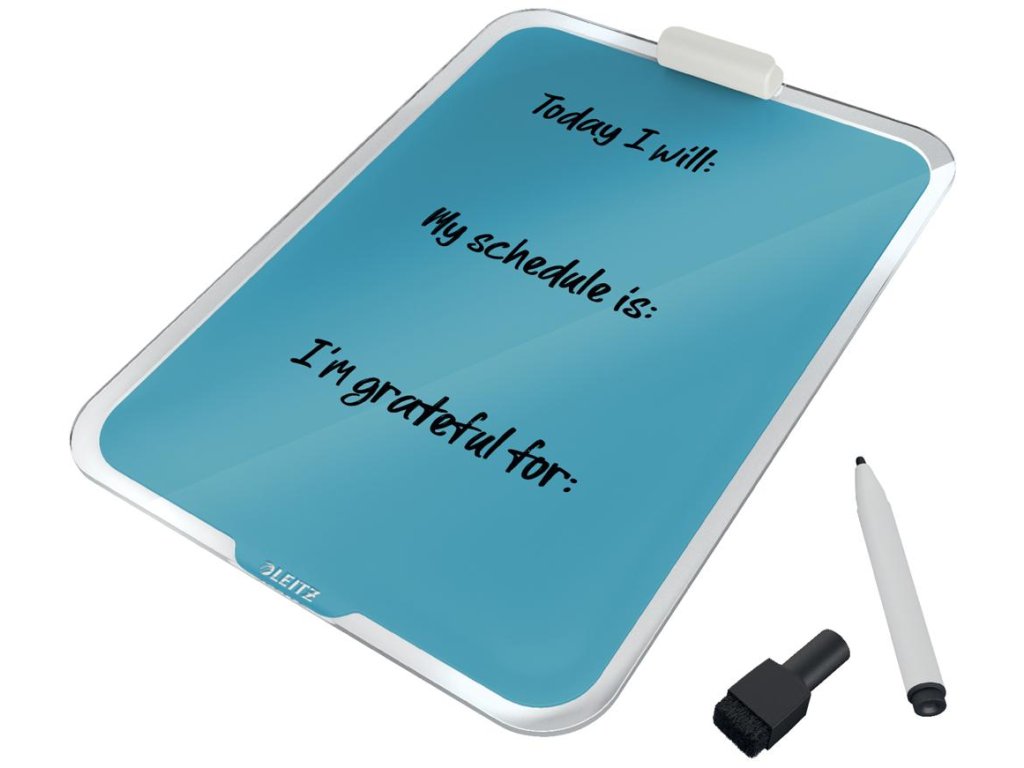 Značková kolekcia Leitz Cosy vám umožní cítiť sa ako doma, nech už vás váš pracovný deň zavedie kamkoľvek. Vďaka minimalistickému dizajnu a príjemným farbám môžete svojmu pracovnému priestoru pridať štýl a farbu. Stolný sklenený flipchart Leitz Cosy je unikátny nástroj na opakované písanie poznámok, suchým popisovačom jednoducho napíšete dôležité informácie, kedykoľvek ho utriete a môžete písať znova. Táto prémiová magnetická sklenená tabuľa je perfektným doplnkom vášho domova alebo kancelárie. Pamätá si za vás, pomôže vám pracovať efektívne celý deň. Rozmery 216 x 30 x 297. Farba modrá.Dodatočné parametre