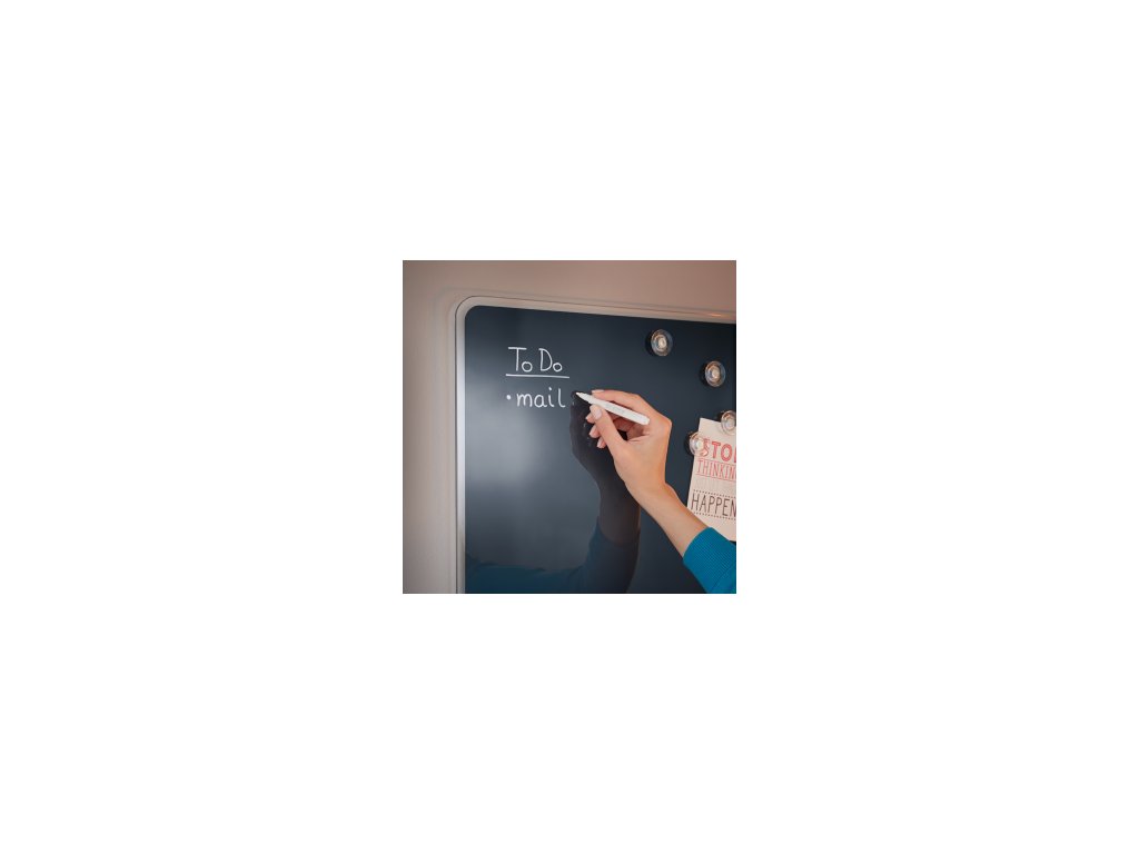 Dodáva sa s čiernym popisovačom na suché stieranie, ktorý má na viečku vstavaný čistiaci kus. Magnetický popisovač drží priložený kdekoľvek na tabuli.