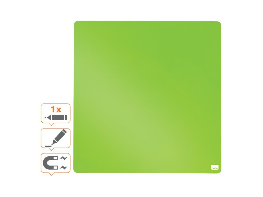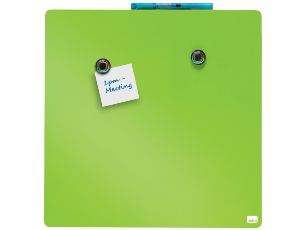 Kompaktné magnetické dielce stierateľné za sucha majú ideálnu veľkosť pre každý pracovný stôl, doma i v kancelárii. Obsahujú dva magnety, biely popisovač s mazacou hubou a montážnu penovú pásku. Farba: zelená. Rozmery 360 × 360 mm.Dodatočné parametre
