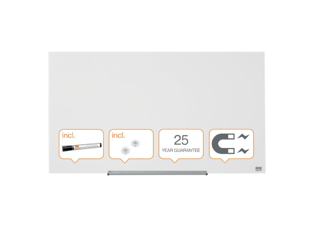 Na širokouhlé sklenené tabule Nobo sa vojdú všetky vaše nápady! Širokouhlý formát a minimalistický rámček maximalizujú využiteľnú plochu na písanie. Systém InvisaMount™, pre jednoduchú inštaláciu na stenu, schová všetky montážne prvky za doskou tabule. Vďaka tomu tabule majú moderný, štýlový a ničím nerušený dizajn. Súčasťou tabule je taktiež odnímateľný hliníkový odkladač na popisovače. Magnetický sklenený povrch zaručuje najlepšiu možnú mazateľnosť a je vhodný na každodenné používanie. Veľkosť uhlopriečky: 45” (114 cm).Dodatočné parametre