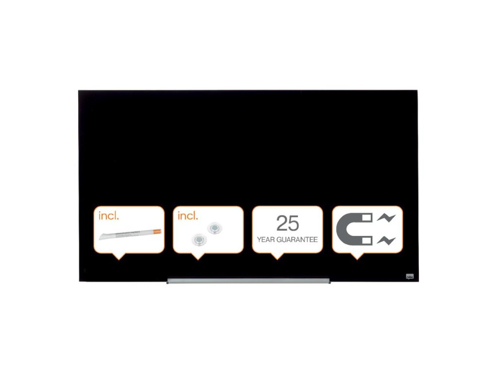 Na širokouhlé sklenené tabule Nobo sa vojdú všetky vaše nápady! Širokouhlý formát a minimalistický rámček maximalizujú využiteľnú plochu na písanie. Systém InvisaMount™, pre jednoduchú inštaláciu na stenu, schová všetky montážne prvky za doskou tabule. Vďaka tomu tabule majú moderný, štýlový a ničím nerušený dizajn. Súčasťou tabule je taktiež odnímateľný hliníkový odkladač na popisovače. Magnetický sklenený povrch zaručuje najlepšiu možnú mazateľnosť a je vhodný na každodenné používanie. Veľkosť uhlopriečky: 57” (144 cm)Dodatočné parametre