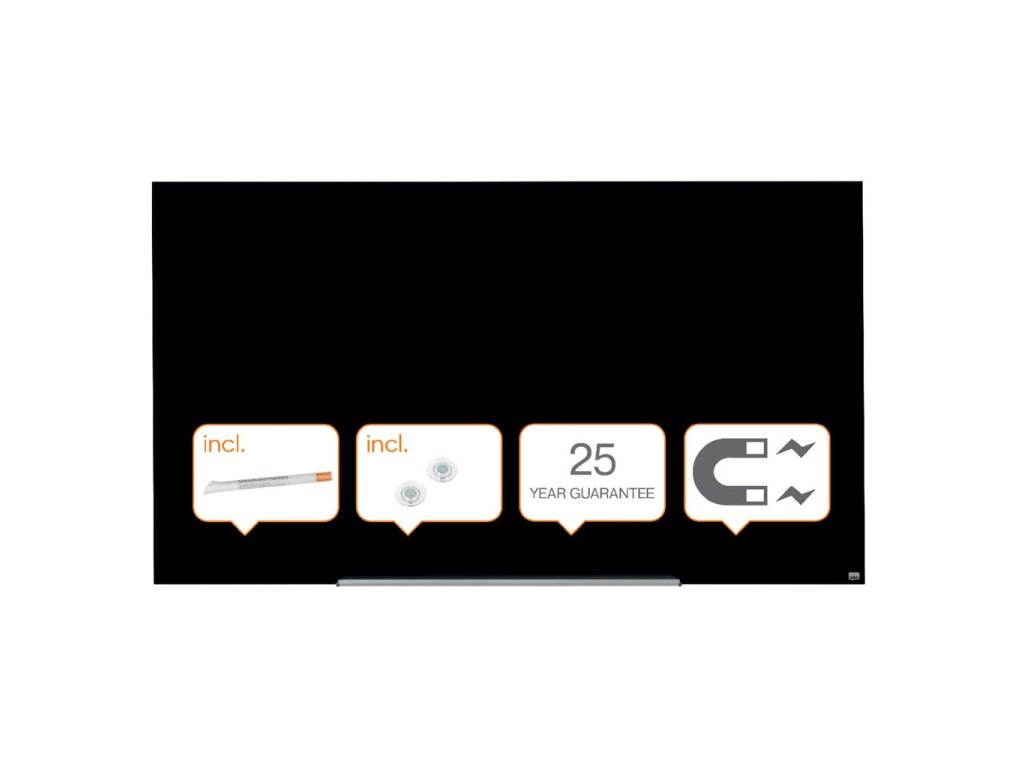 Na širokouhlé sklenené tabule Nobo sa vojdú všetky vaše nápady! Širokouhlý formát a minimalistický rámček maximalizujú využiteľnú plochu na písanie. Systém InvisaMount™, pre jednoduchú inštaláciu na stenu, schová všetky montážne prvky za doskou tabule. Vďaka tomu tabule majú moderný, štýlový a ničím nerušený dizajn. Súčasťou tabule je taktiež odnímateľný hliníkový odkladač na popisovače. Magnetický sklenený povrch zaručuje najlepšiu možnú mazateľnosť a je vhodný na každodenné používanie. Veľkosť uhlopriečky: 85” (215 cm).Dodatočné parametre