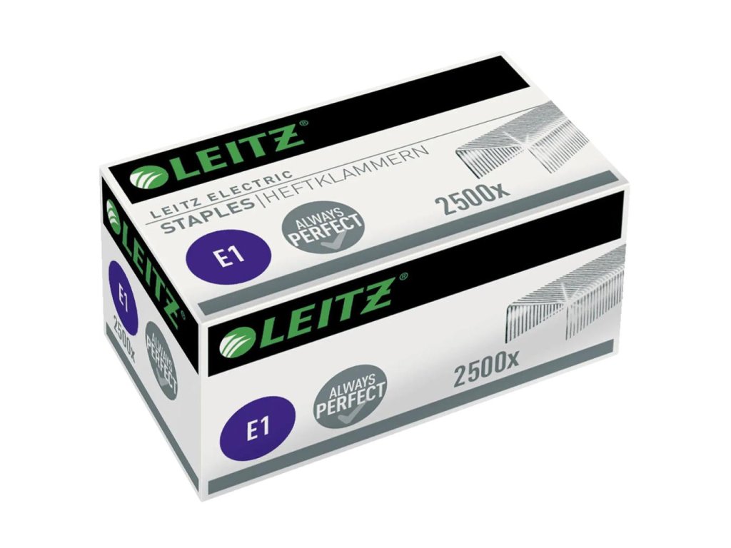 Vyrobené z extra pevnej ocele. Odporúčané pre elektrickú zošívačku Leitz New NeXXt WOW. K zošitiu až 10 listov (80 g/m2). Krabička obsahuje: 2500 spiniek Prémiová kvalita, odporúčané do elektrickej zošívačky Leitz 5532, 5566. Dĺžka nožičky spinky 5 mm.Dodatočné parametre