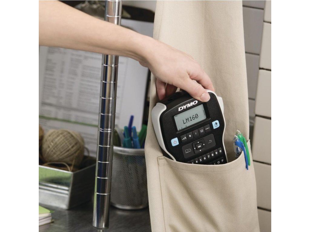 Prenosný a cenovo dostupný model etiketovacieho zariadenia s veľkým displejom. Stačí zadať text, naformátovať ho jedným dotykom inteligentných tlačidiel a vytlačiť ! Jednoduché zadávanie textu, rýchle formátovanie, profesionálny vzhľad a zrozumiteľnosť od zapnutia až po tlač. DYMO LM 160 používa kazetové pásky typu D1 v šírkach 6, 9 a 12 mm. Zdrojom napájania je 6 ks AAA batérií alebo voliteľný napájací adaptér, ktoré nie sú súčasťou zariadenia.Technické parametre: 1-riadkový displej, slovenská diakritika, QWERTY klávesnica, 228 znakov a symbolov, 1 font, 4 rámčeky, 8 štýlov textu, podčiarknuté písmo, zvislý text, 6 veľkostí písma, pamäť posledného štítka, náhľad na štítok pred tlačou,ručný odstrih pásky.