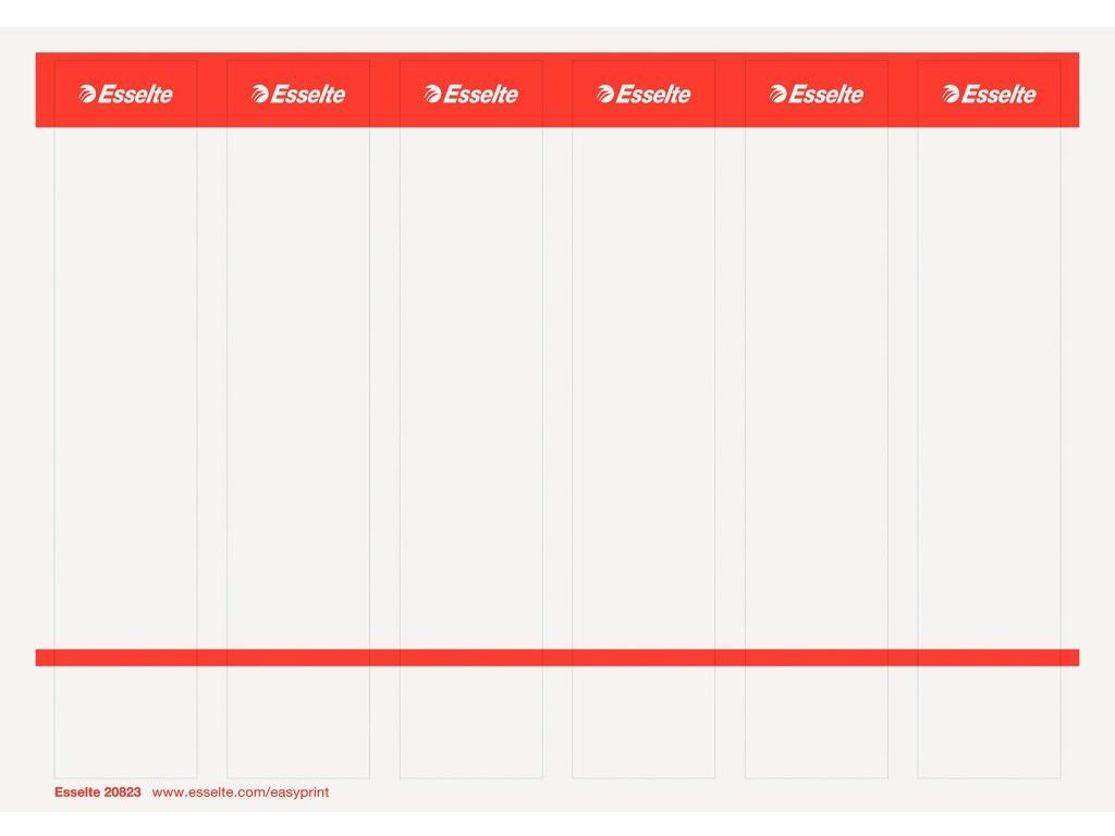 Náhradné samolepiace papierové chrbtové štítky na šírku chrbta 5 cm na identifikáciu založených dokumentov. Štítky sú vhodné na potlač do laserových a atramentových tlačiarní a kopíriek cez jednoduchý internetový nástroj `EASYPRINT` na stránke www.esselte.com/easyprint. V balení 10 hárkov (á 6 štítkov/hárok) s predperforovanými štítkami. Farba biela.Dodatočné parametre