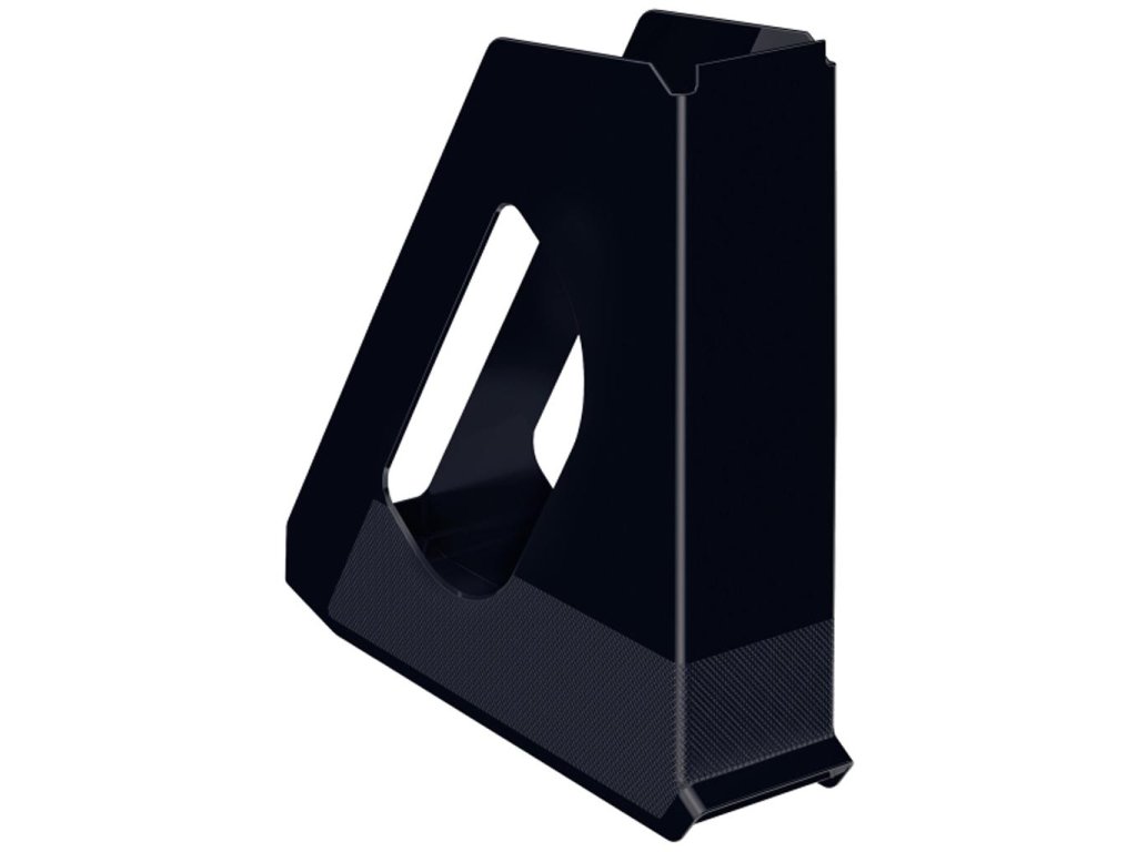 Moderný stojan na časopisy pre uloženie dokumentov formátu A4 na pracovnom stole s unikátnym embosovaným povrchom vo sviežich farbách radu Esselte VIVIDA. Materiál polystyrén. Šírka chrbta 7 cm. Farba čierna.`Je možné kombinovať s ostatnými výrobkami z radu Esselte Europost a VIVIDA pre jednotný vzhľad kancelárie