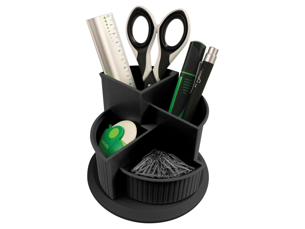 Rotačný stojan so 4 sekciami na písacie potreby a ďalšie drobnosti v dizajne rady Linear. Priemer 14 cm, výška 10 cm.