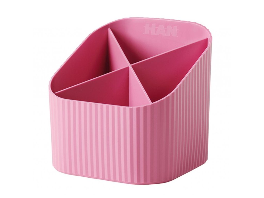 Stojan so 4 priehradkami v modernom dizajne a trendových farbách. Materiál vysokokvalitný PP. Rozmery 111 × 121 × 106 mm. Farba ružová.Dodatočné parametre