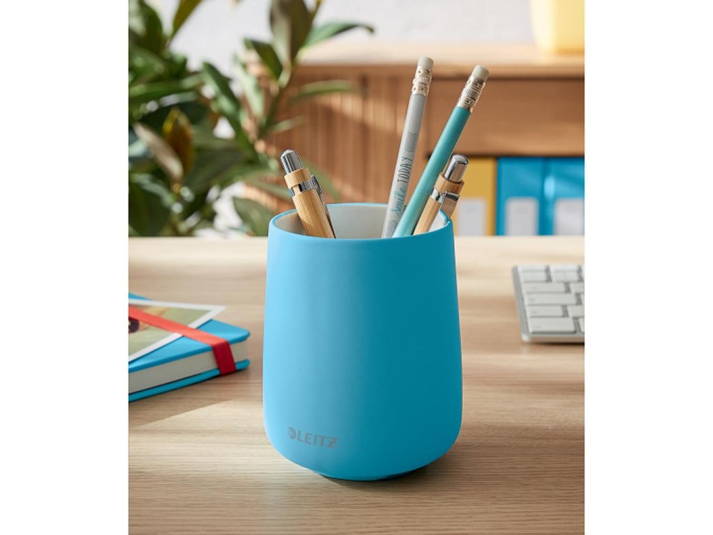 Značková kolekcia Leitz Cosy vám umožní cítiť sa ako doma, nech už vás pracovný deň zavedie kamkoľvek. Vďaka minimalistickému dizajnu a príjemným farbám môžete svojmu pracovnému priestoru pridať štýl a farbu. Tento kvalitný keramický téglik je ideálny do kancelárie aj domov, na pracovný stôl na odloženie písacích potrieb či pravítka, do kúpeľne napríklad na zubnú kefku a pastu. Výška 108 mm a priemer otvoru 85 mm sú dostatočné na ukladanie a manipuláciu, aj malé veci vám pomôžu zostať dobre naladení celý deň. Moderný keramický téglik na ceruzky. Výška 108 mm a priemer horného otvoru 85 mm. Lákavé matné farby s minimalistickým dizajnom. Farba modrá.Dodatočné parametre