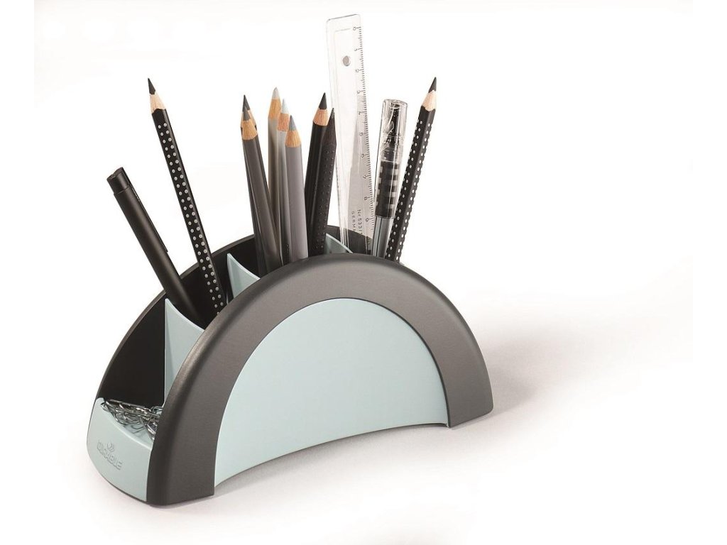Vysoko kvalitný stojan v exkluzívnom prevedení v dizajne produktovej rady DURABLE VEGAS. Päť rôzne veľkých oddielov vhodných na perá, ceruzky, nožnice, spinky, spony a pod. Protišmyková úprava. Rozmery (š×v×h) 205×90×80 mm.Farba: čierna