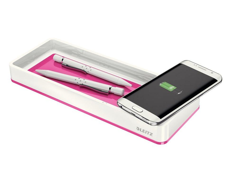 Stolový organizér s bezdrôtovým nabíjaním Leitz WOW metalický ružový