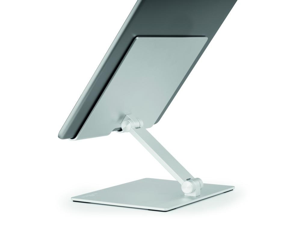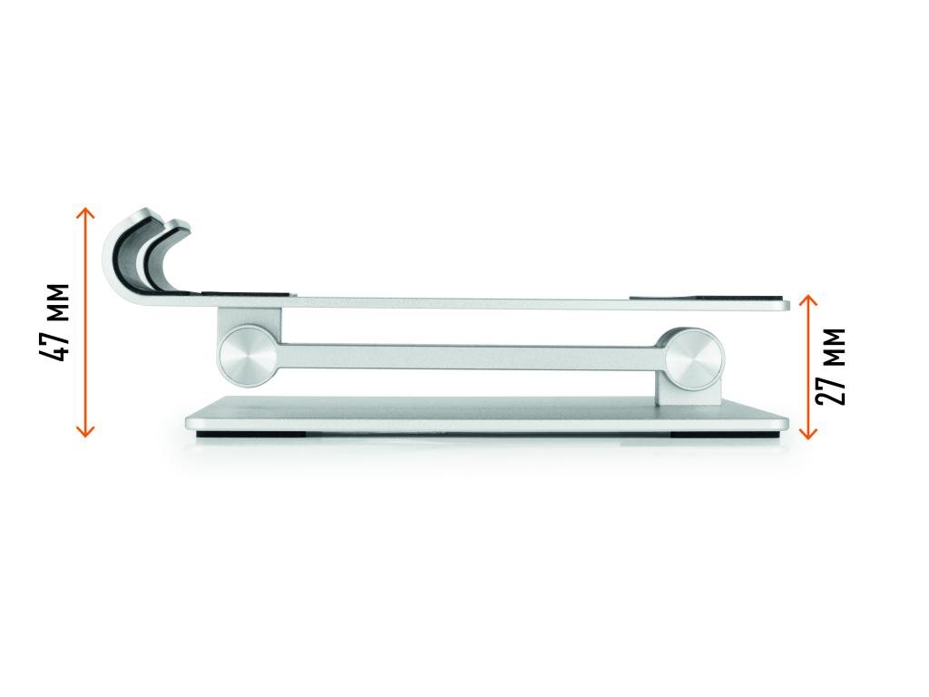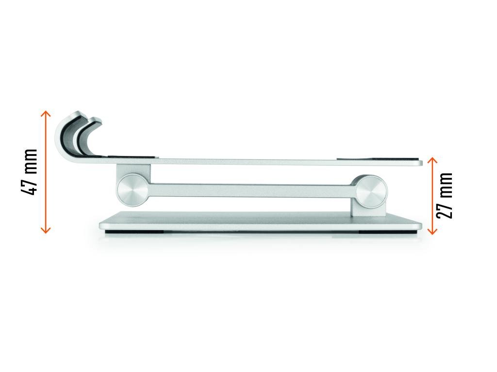 Univerzálny, stojan pre smartfóny a tablety od 13” do 15”. Priestorovo úsporný, skladací a ľahko prenosný. Maximálna nosnosť: 1 kg. Sklopný pre úsporu miesta. Vyrobený z vysoko kvalitného hliníka.Dodatočné parametre