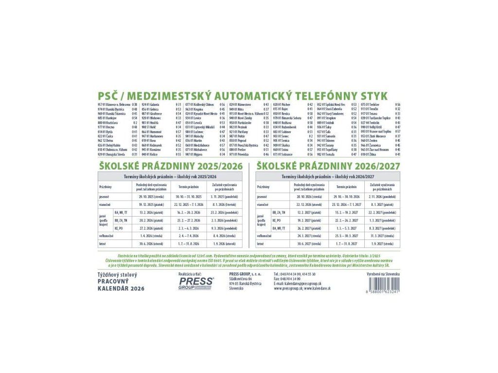 Stolový kalendár riadkový 21 x 15 cm - Pracovný malý 2026