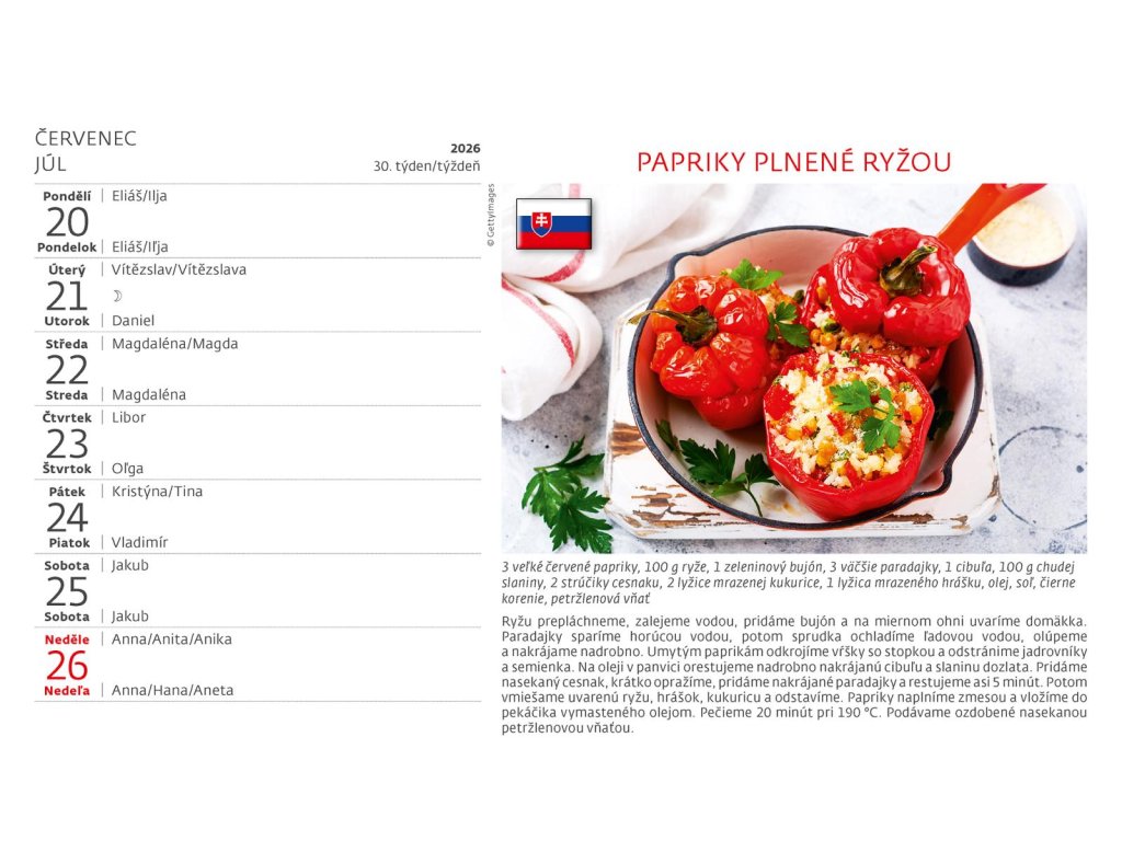 Stolový kalendár riadkový 22,6x13,9 cm - Česko-slovenská kuchárka 2026
