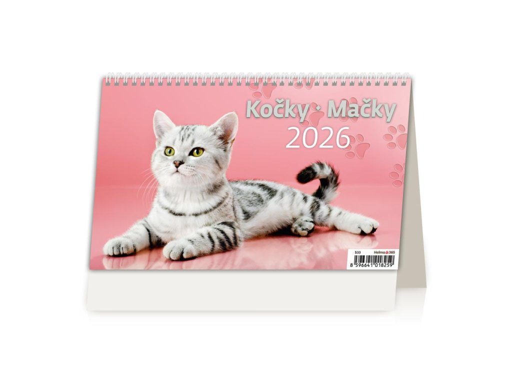 Stolový kalendár riadkový 22,6x13,9 cm - Kočky/Mačky 2026