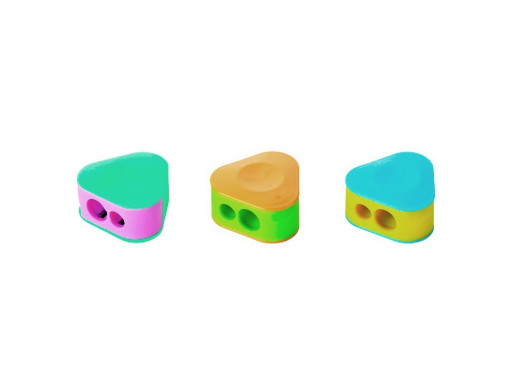 Trojuholníkové plastové strúhadlo KEYROAD, dvojité. Balenie: blister. Farba: mix farieb.Dodatočné parametre