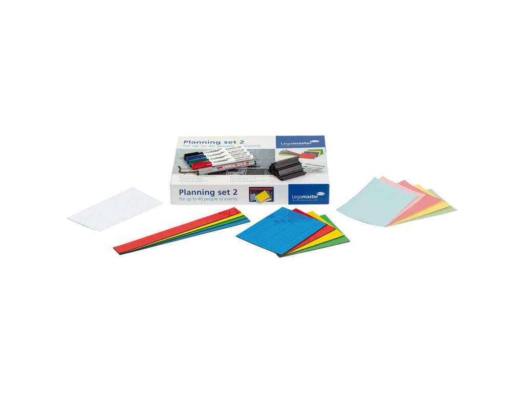 Plánovacia sada 2 je vhodná pre plánovanie do 40 ľudí/ udalostí. Obsahuje: sadu popisovačov TZ 140/ 4S, jeden popisovač na priesvitné fólie e152M, 12 magnetických prúžkov 10 × 300 mm v 4 farbách, 280 ks 10 mm magnetických symbolov v štyroch farbách, 40 magnetických menoviek rozmeru 10 × 60 mm a 7 hárkov štítkov v rôznych farbách (á 45 štítkov na hárku).Vhodná pre plánovanie: do 40 ľudí/udalostí