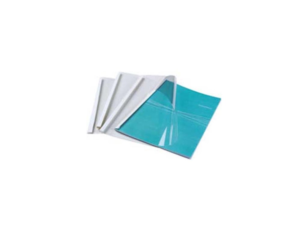 Obálka k zariadeniam na tepelnú väzbu s prednou stranou z priehľadnej polyesterovej fólie a zadnou stranou z bieleho kartónu hrúbky 200 g v saténovej úprave. Kapacita listov 33-43. Farba predná/zadná: číra/bielaBalenie: 100 ks