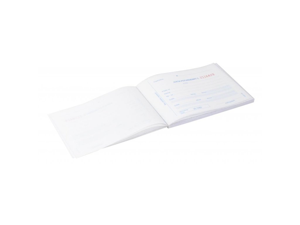 Potvrdenka s juxtou číslovaná, samoprepis, A6, blok 25 × 3 listov.
