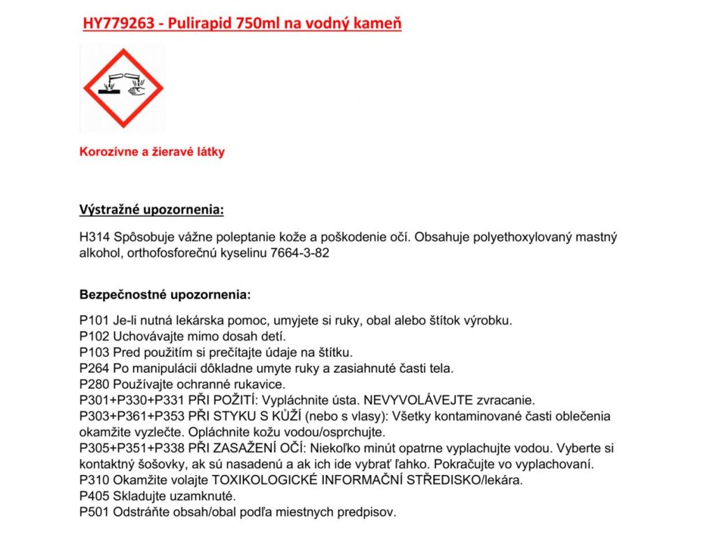 | Produktový rad: | Pulirapid hrdza a vodný kameň |