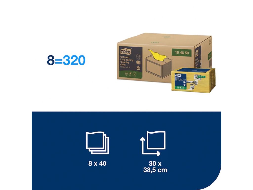 Čistiaca utierka 1-vrstv. TORK Long-Lasting žlté W8, 40 ks