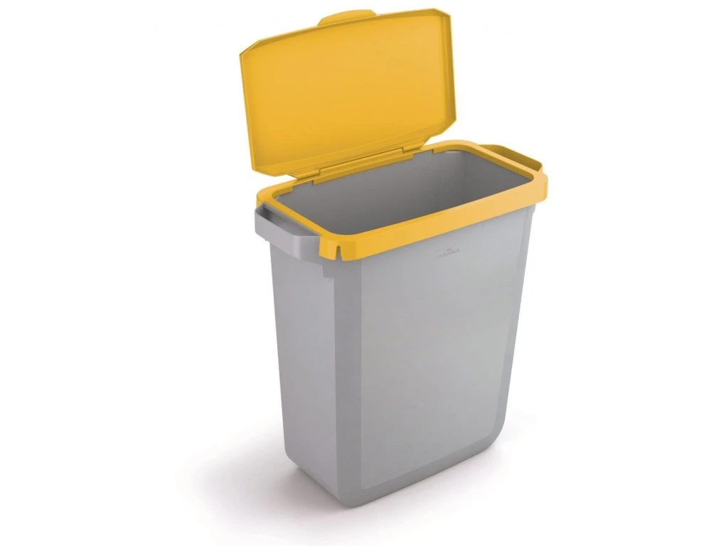 Obdĺžnikový rám s vekom na koše DURABIN 60 so systémom clip-on, ktorý umožňuje pevné uchytenie na koše. Farba žltá.
