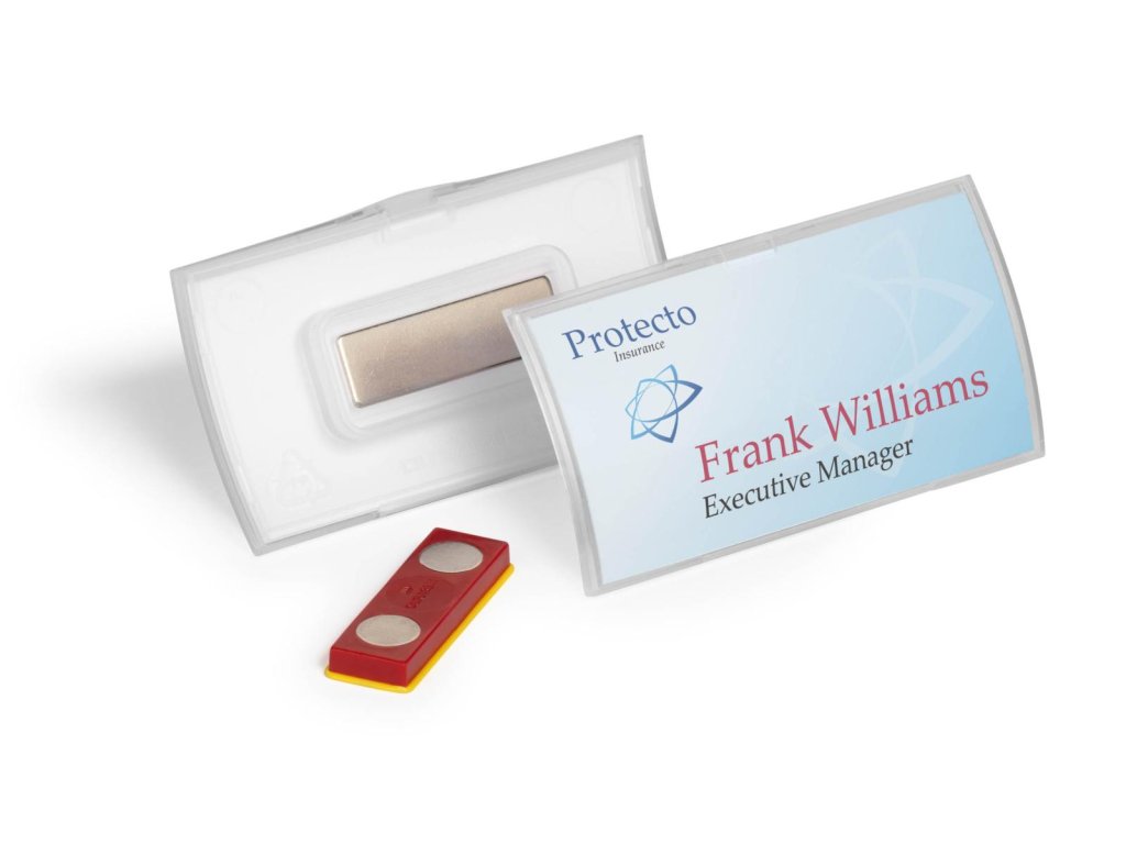 • Konvexná jednodielna menovka vyrobená z PP so špeciálnym magnetickým zapínaním, ktoré zabraňuje skrúteniu, skĺznutiu alebo uvoľneniu menovky pri nosení• Pohodlné nosenie a dobrá čitateľnosť