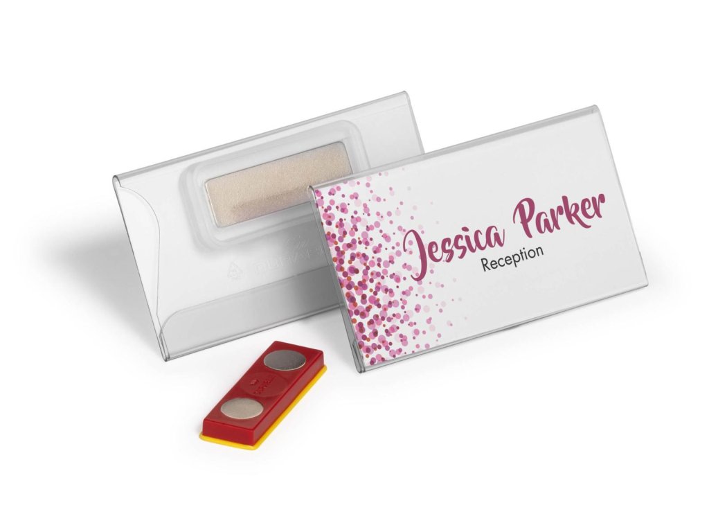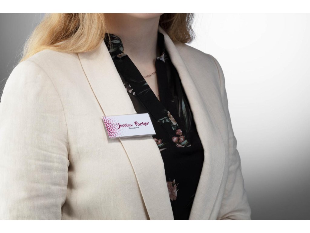 • Menovka so špeciálnym magnetickým zapínaním, ktoré zabraňuje skrúteniu, skĺznutiu alebo uvoľneniu menovky pri nosení• Pohodlné nosenie a dobrá čitateľnosť