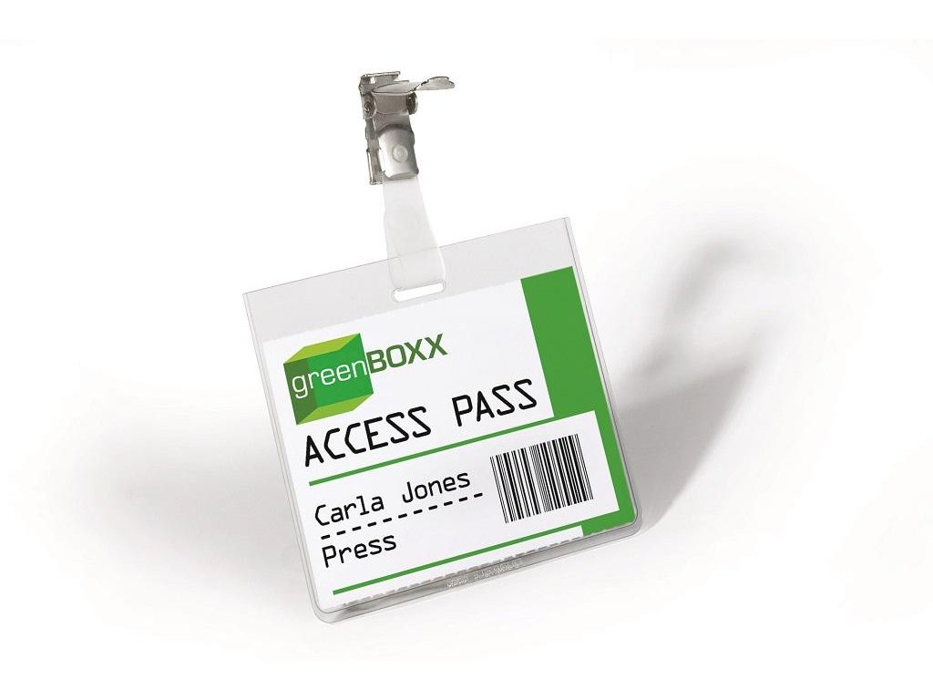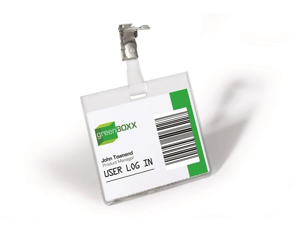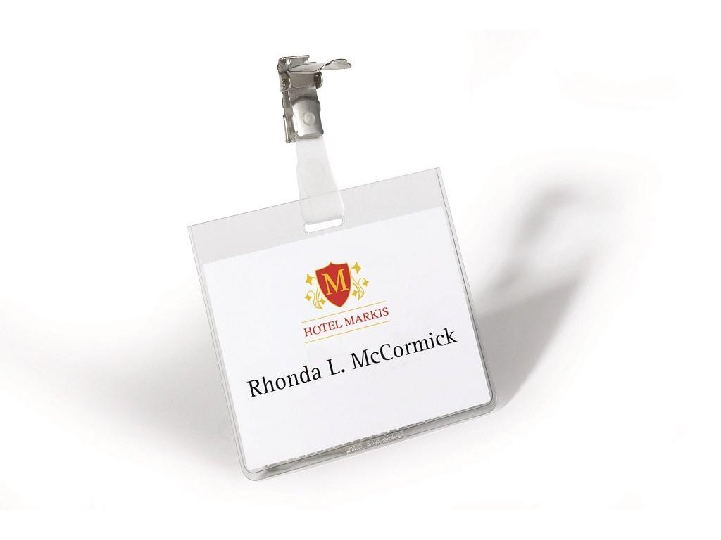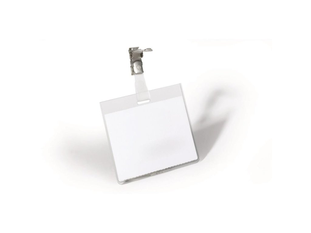 Priehľadná visačka s európskym štipcom, umiestneným na dlhšej strane visačky. Dodávaná s papierovou kartičkou rozmerov 90×60 mm. Model, pri ktorom po uzavretí štipca nie je možné menovku vybrať. Náhradné papieriky obj. kód DU145602. Balenie 25 ks.Rozmery: 90x60 mm