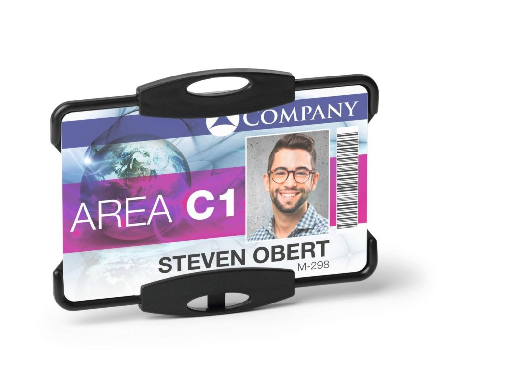 Visačka na plastovú kartu v otvorenom prevedení na 1 preukaz / kartu. Farba čierna.• Vyrobená z recyklovaného plastu v kvalite Blue Angel