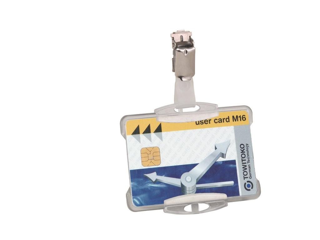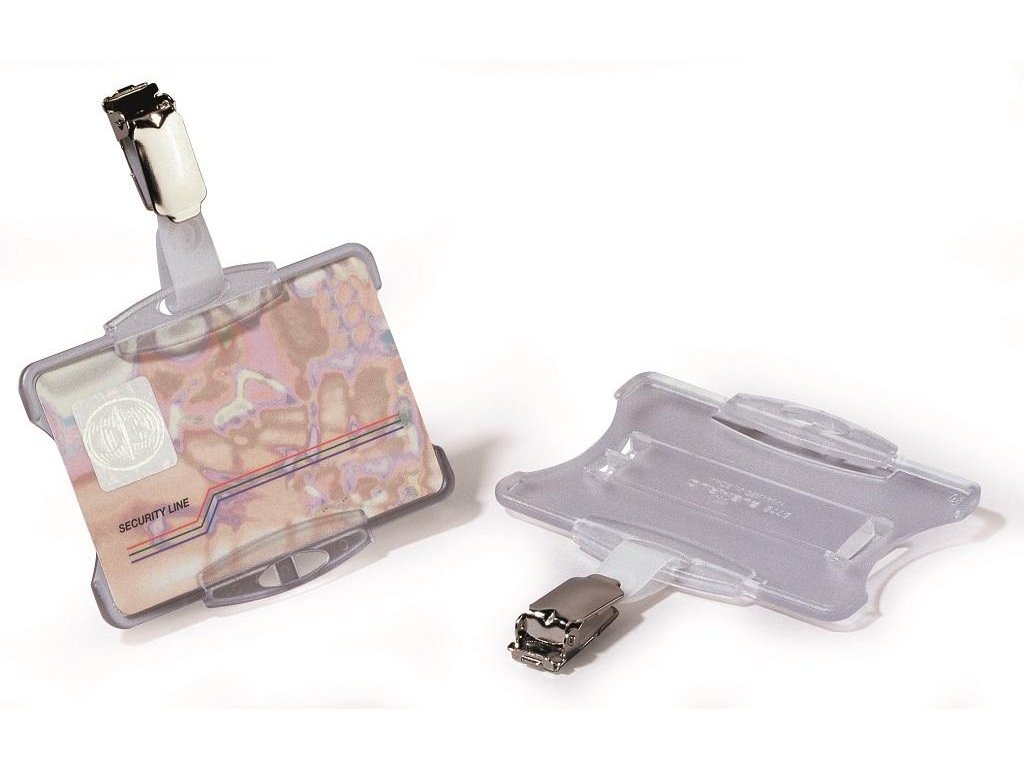Plastová visačka na jednu plastovú identifikačnú kartu z priehľadného pružného plastu vysokej kvality, z prednej strany otvorená. Vhodná na ochranu magnetických a bezpečnostných kariet pred poškodením. Uchytenie klipu štipcom na kratšej alebo dlhšej strane poskytuje univerzalitu pri použití horizontálne alebo vertikálne označených kariet. Balenie 25 ks.Rozmery š × v: 85 x 54 mm