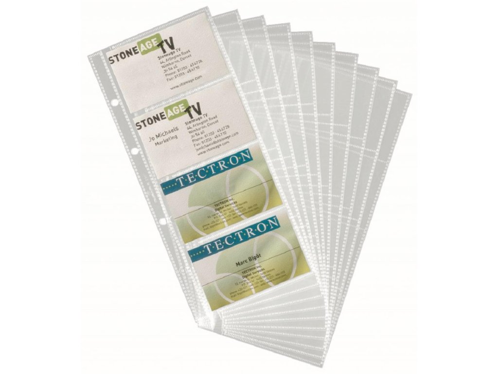 Náhradné priehľadné obaly na 80 vizitiek do vizitkárov Visifix DU238558, DU238507 a DU244101 a VISIFIX PRO DU246158. V balení 10 obalov.Rozmery vizitkového okna: 90 x 57 mm
