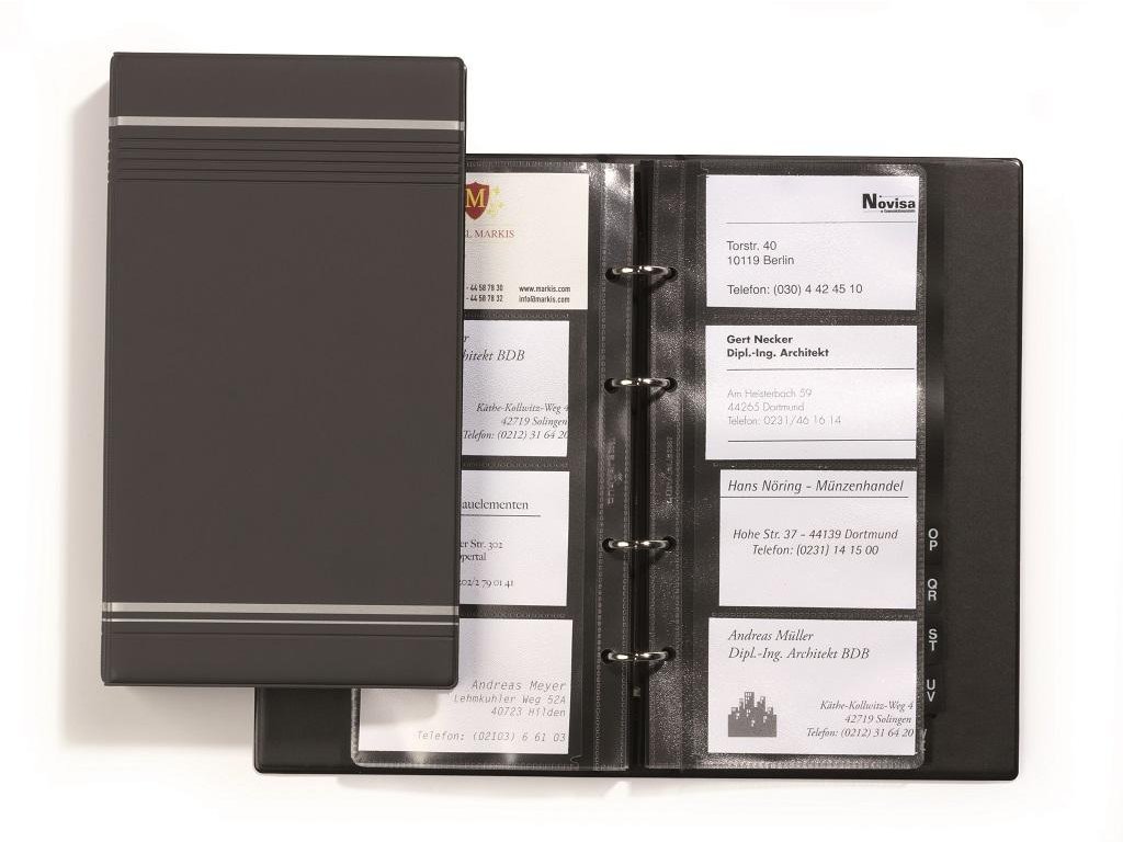 Vizitkár prenosný 4-krúžkový na 200 vizitiek VISIFIX čierny