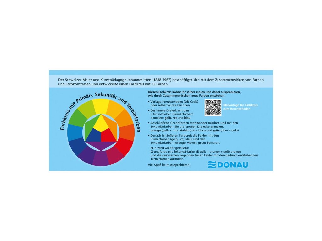 Vodové farby Donau, 12 farieb, vrátane nepriehľadnej bielej. Vyberateľné misky, paleta na miešanie farieb.Dodatočné parametre