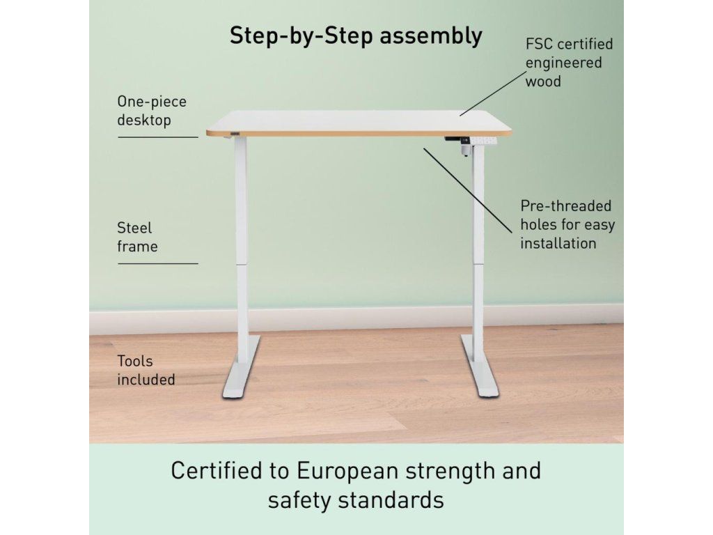 • Navrhnuté na používanie v domácich kanceláriách, priestoroch s vysokou frekvenciou stolov, študentských priestoroch či ako dočasný stôl, s jednoduchým nastavením výšky a 4 obľúbenými predvoľbami výšky