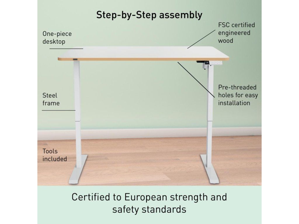 • Navrhnuté na používanie v domácich kanceláriách, priestoroch s vysokou frekvenciou stolov, študentských priestoroch či ako dočasný stôl, s jednoduchým nastavením výšky a 4 obľúbenými predvoľbami výšky