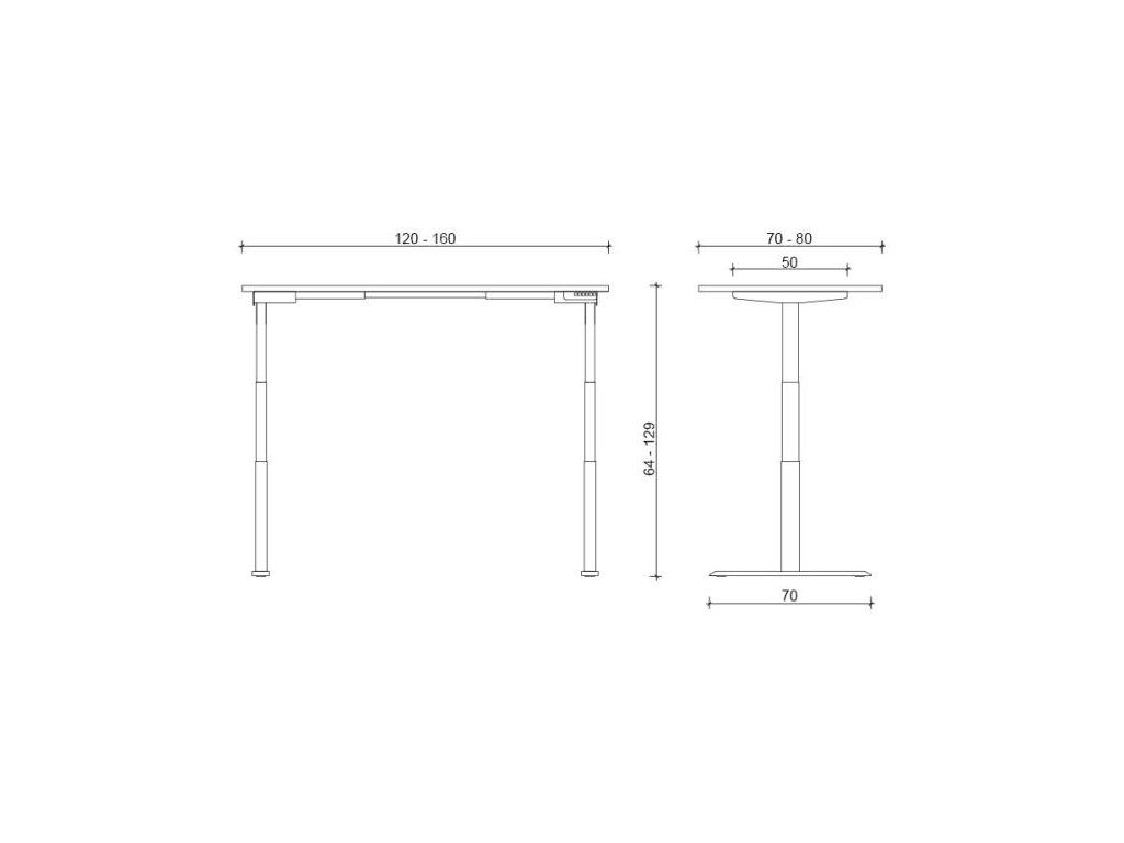 • výškovo nastaviteľný stôl s elektrickým 2-motorovým pohonom a 3-segmentovým zdvíhacím mechanizmom
