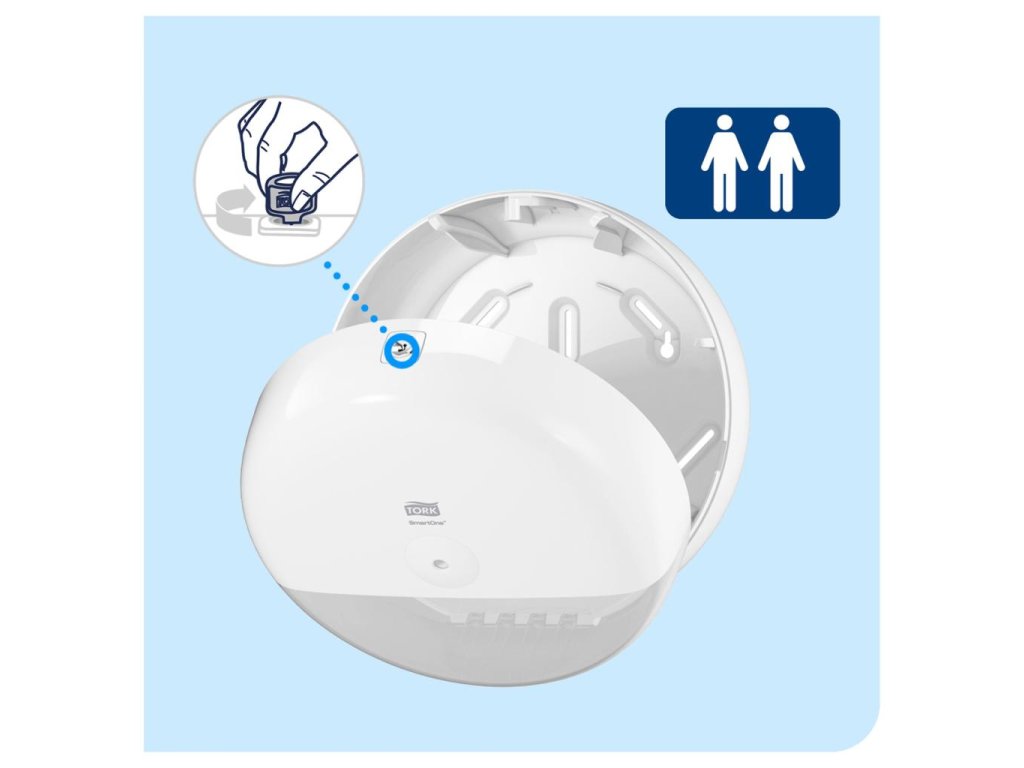Tork SmartOne® zásobník na toaletný papier v kotúči v dizajne Elevation je moderný a efektívny systém zásobníkov vhodný pre náročné toalety a umyvárne s vysokou návštevnosťou. Dávkovanie po útržkoch pomáha znižovať spotrebu až o 40 % v porovnaní s tradičnými jumbo kotúčovými zásobníkmi.Materiál: plast