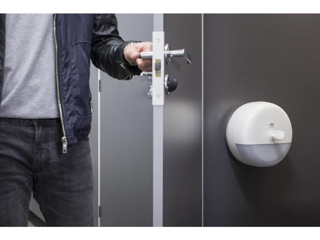 Tork SmartOne® zásobník na toaletný papier v kotúči v dizajne Elevation je moderný a efektívny systém zásobníkov vhodný pre náročné toalety a umyvárne s vysokou návštevnosťou. Dávkovanie po útržkoch pomáha znižovať spotrebu až o 40 % v porovnaní s tradičnými jumbo kotúčovými zásobníkmi.Materiál: plast
