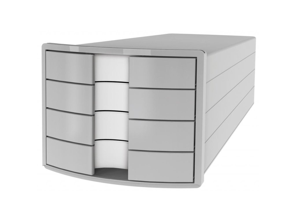 Box so štyrmi zatvorenými zásuvkami v tvare počítačového monitora.Rozmery (š × v × h) 294 × 235 × 368 mm.Farba boxu/zásuvky: sivá/sivá