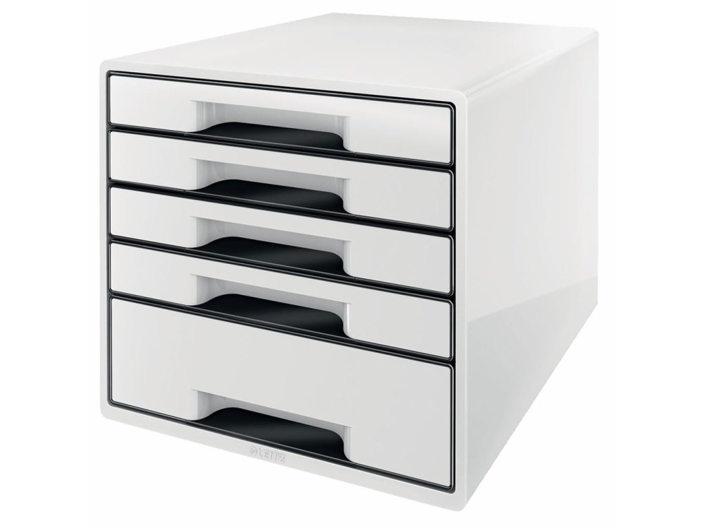 Box, dopĺňajúci produktovú radu Leitz WOW. Ľahko vysúvateľné 4 malé a 1 veľká zásuvka so zarážkou proti úplnému vysunutiu, jednoduché otváranie a zatváranie. Gumové nožičky pre lepšiu stabilitu, rozlišovač na popis zásuvky. Rozmery 287 × 270 × 363 mm. Farba čierna.Dodatočné parametre