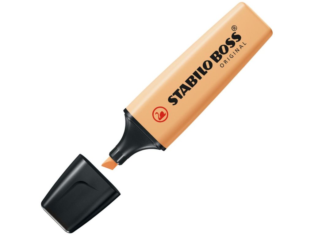 Zvýrazňovač pre všetkých, ktorí sa pri čítaní potrebujú sústrediť na to podstatné. Produkt STABILO BOSS ORIGINAL ponúka najvyššiu kvalitu spracovania, atramentu a pohodlia pri písaní. Technológia STABILO Anti-Dry-Out chráni štyri hodiny pred vyschnutím. Zvýrazňovač je možné doplniť náplňami STABILO BOSS. Farba pastelová oranžová. Väčšie balenie 10 kusov.-Zvýrazňovač v dizajnovej klasike od roku 1971